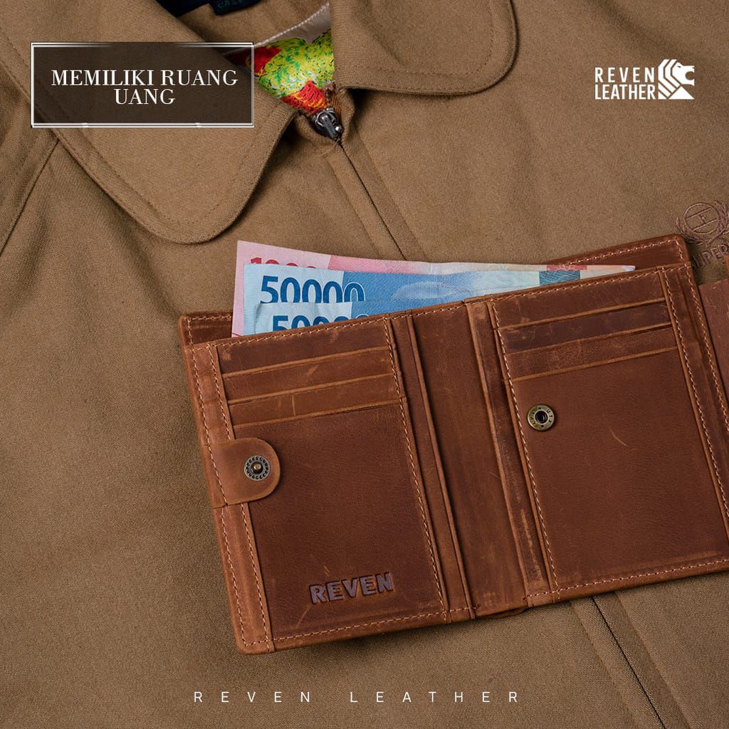 Reven Leather Aslan - Dompet Kartu Lipat Pendek Pria Slot Bahan Kulit Sapi Asli Crazy Horse Premium 100 PERSEN Origina