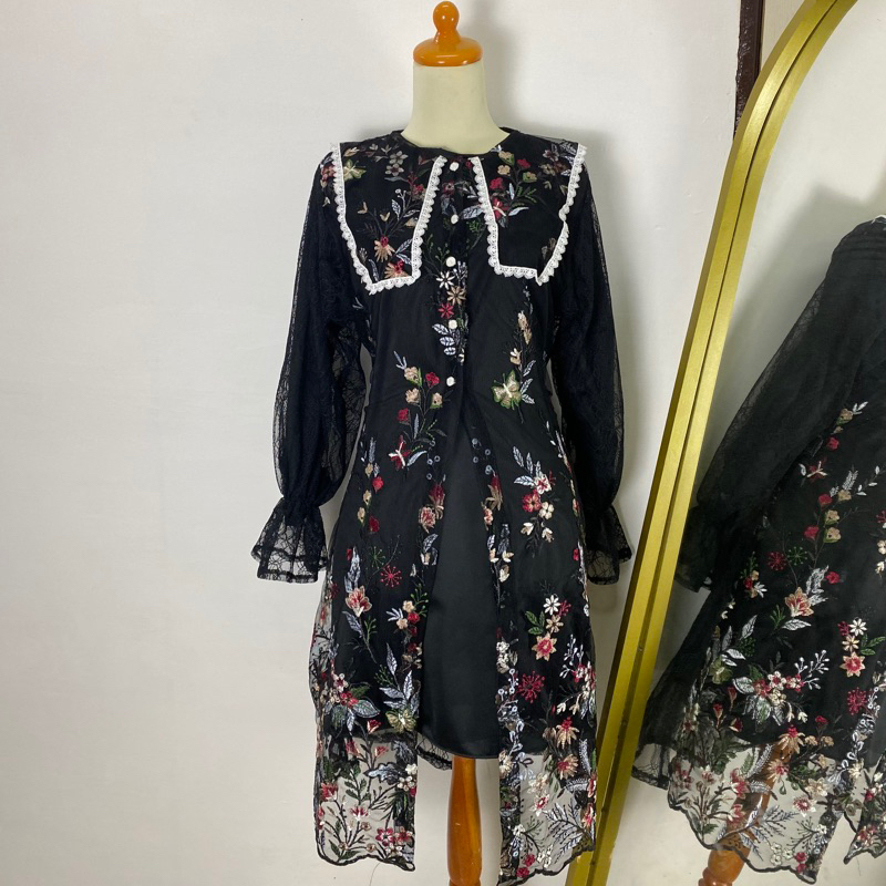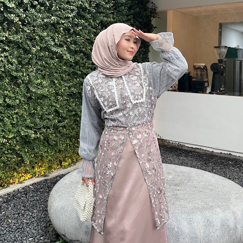 HAVA OUTER - Outer Brukat Tile Garden Premium | Tunik Wanita All Size | Outfit Kondangan & Pesta