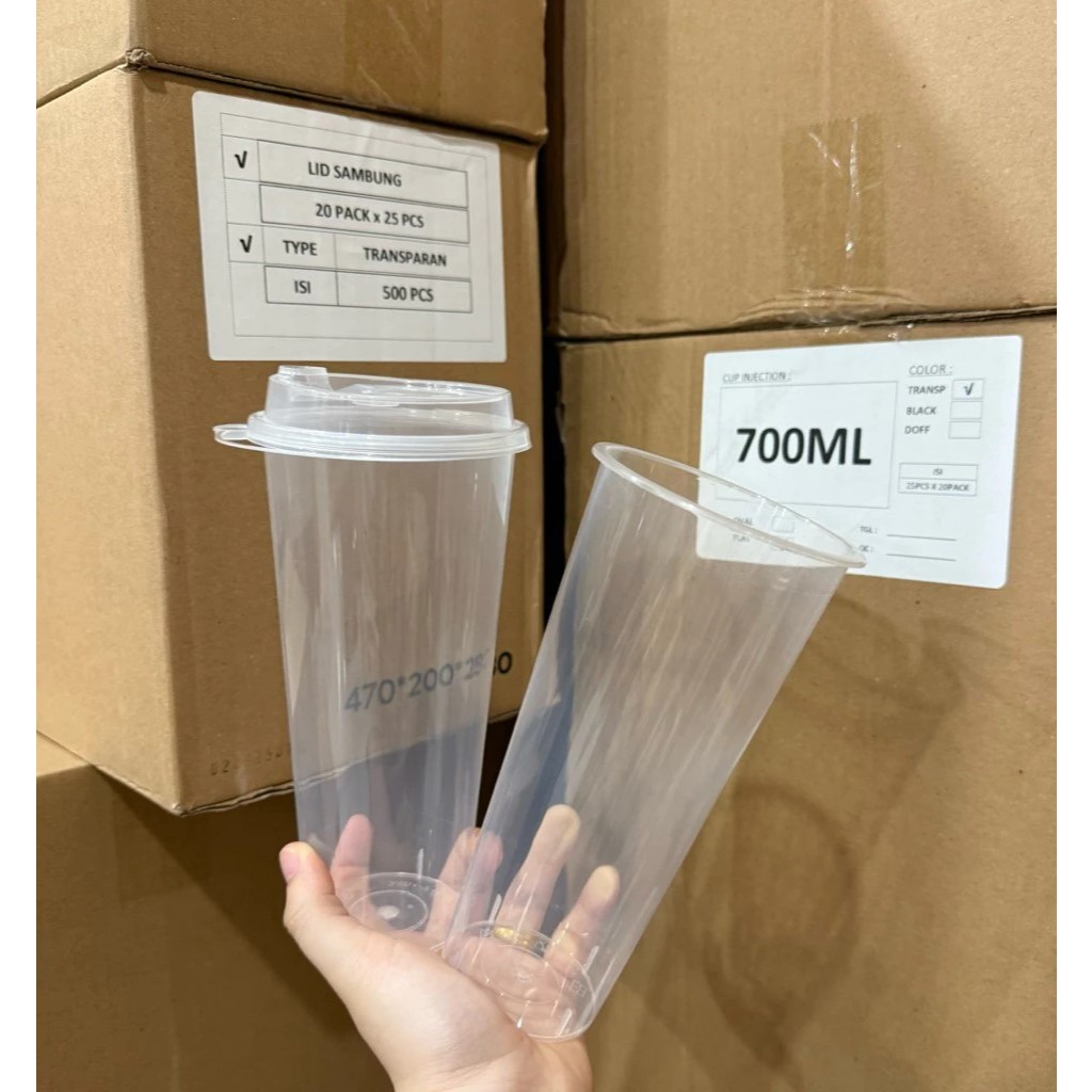 1 KARTON Gelas Plastik Injection Cup + Tutup PP Bening Frosted Transparan 12 Oz 14 Oz 16 Oz 22 Oz / 380 400 500 700 ML P
