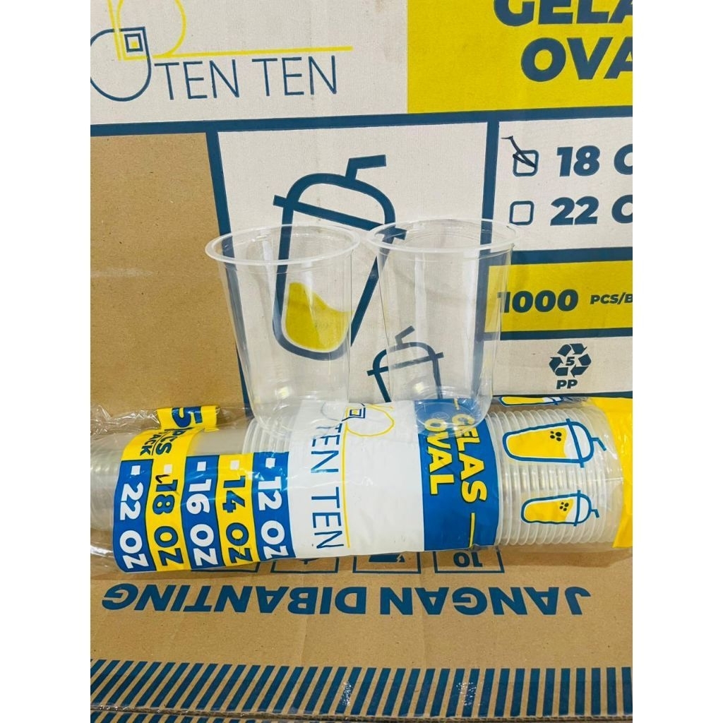 1 dus 1000 pcs Gelas Oval TEN TEN 12oz 14oz 16oz 18oz 22oz / Gelas Plastik Oval Ten Ten / U Cup / Gelas Kekinian Ten T