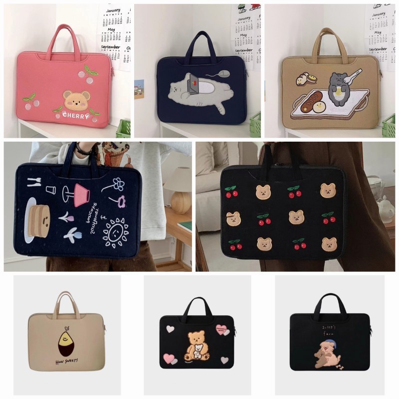 Tas Laptop Sleeve Case Tahan Guncangan Bordir Tangan Gaya Korea 13 14 15 16inch