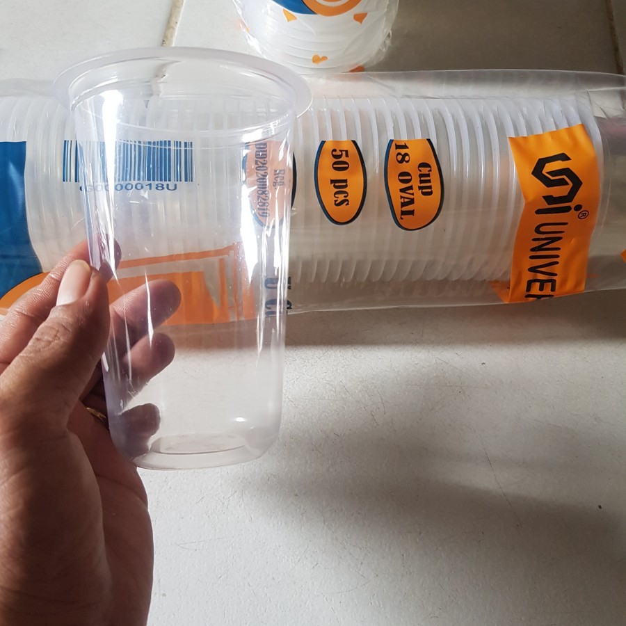 GELAS PLASTIK OVAL-DATAR-SLIM UNIVERSAL-CUP 22 18 16 14 12 OZ MINUMAN ISI 1000 PCS