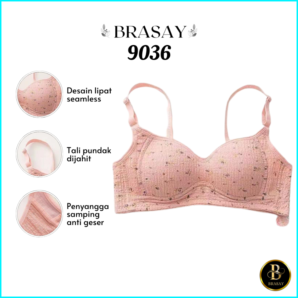 Brasay Bra Push Up Tanpa Kawat Wanita Sport Flower Fashion 9036