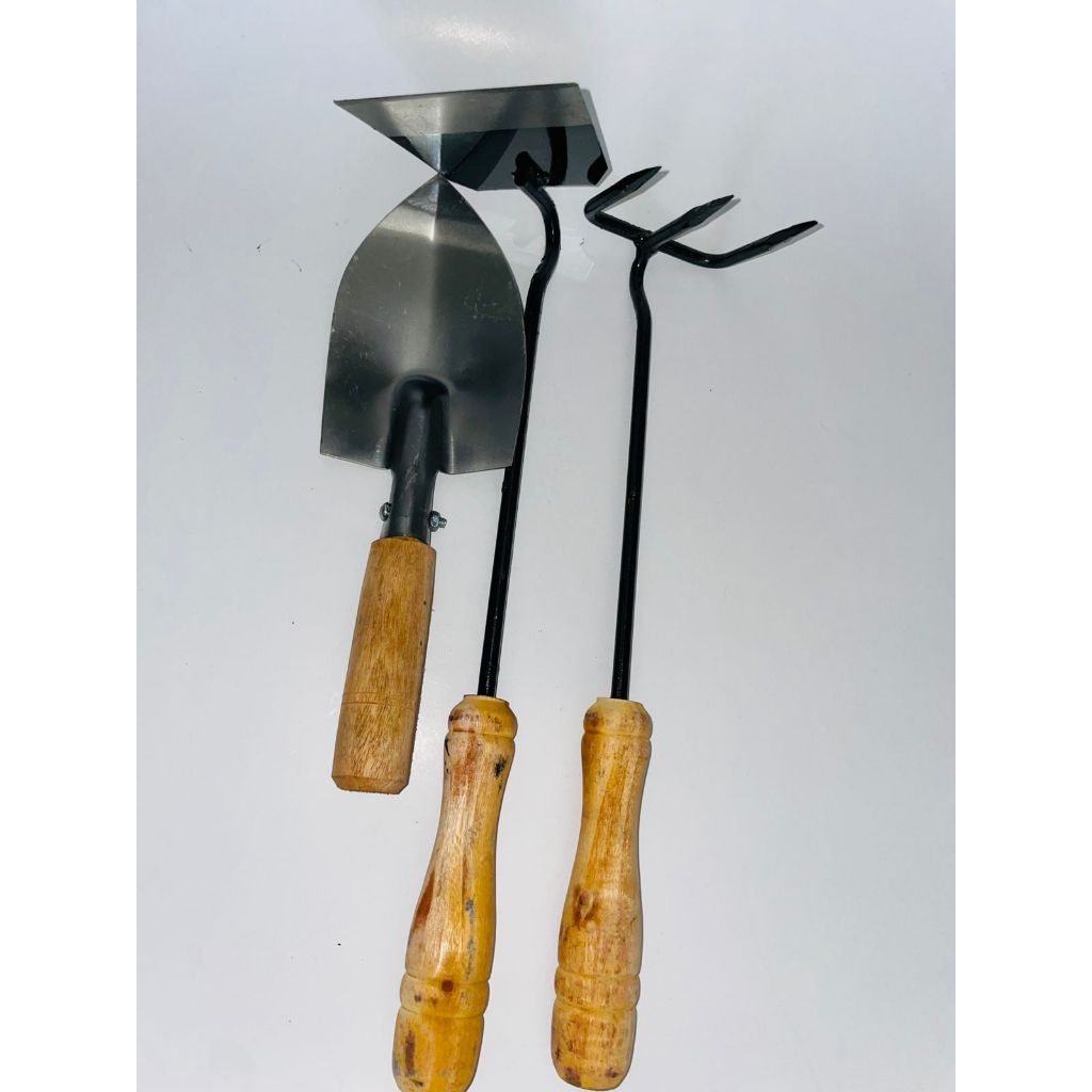 Paket 3 Pcs Alat Taman Mini Garpu Cangkul Sekop Lancip Gagang Kayu
