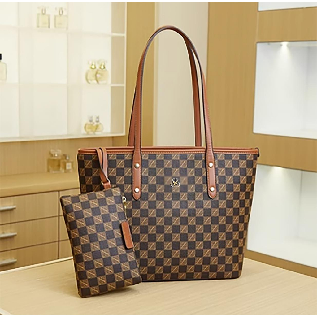 SweetSally - Zola Tote Bag + Dompet Pouch / Tas Kantor Cewek Korea Besar Kulit PU