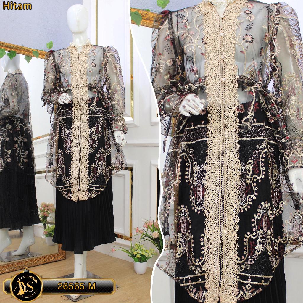 Yesaya Outer Brukat Corak Garden Atasan Tunik Muslim Wanita Full Bordir Outfit Kondangan 26565