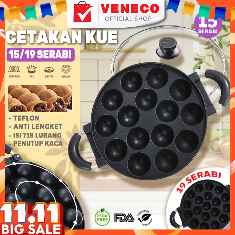 Cetakan takoyaki 15 Lubang + tutup kaca / Cetakan Takoyaki 19 Lubang Cekung