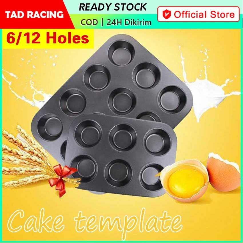 6/12 Lubang Loyang / Cetakan Kue Muffin Polos Teflon Pastry Muffin Pan 12 Cup / Loyang Cup Cake