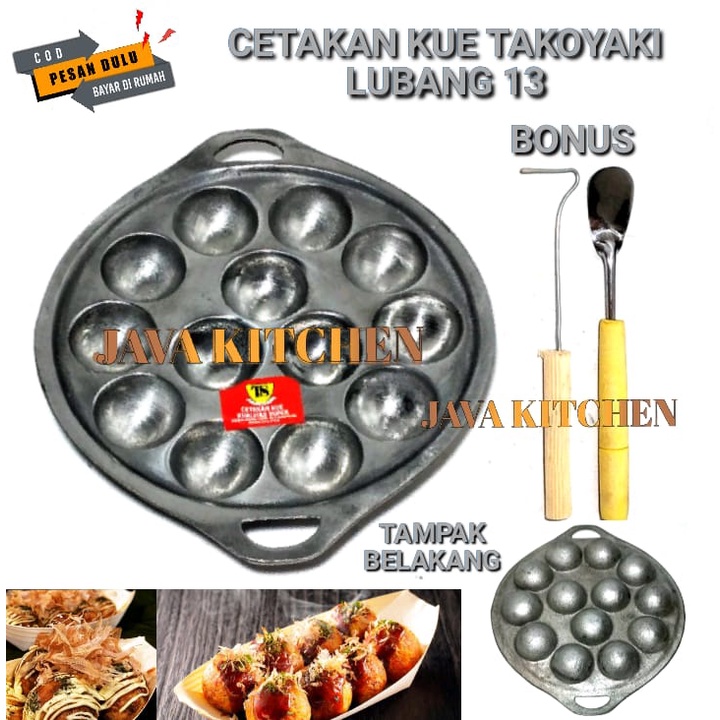 Cetakan takoyaki Cetakan kue takoyaki lubang 13atis spatula dan pengait