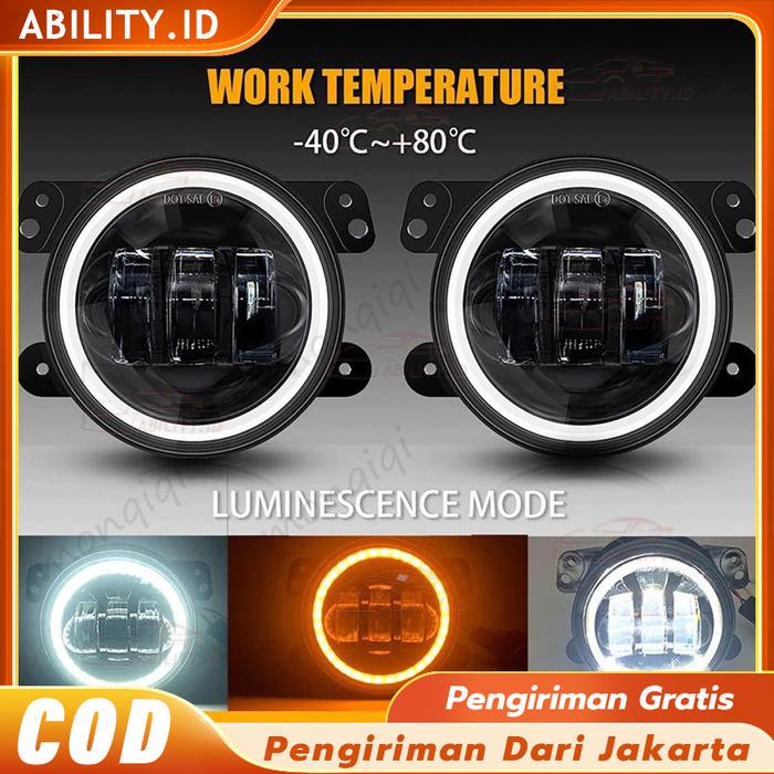 2Pcs Lampu Foglamp Led Projector Daymaker 4 inch 3 Lensa Full Ring 30W Fog Lamp Angel Aye Putih Kuning 3WARNA - 4INCH 3W