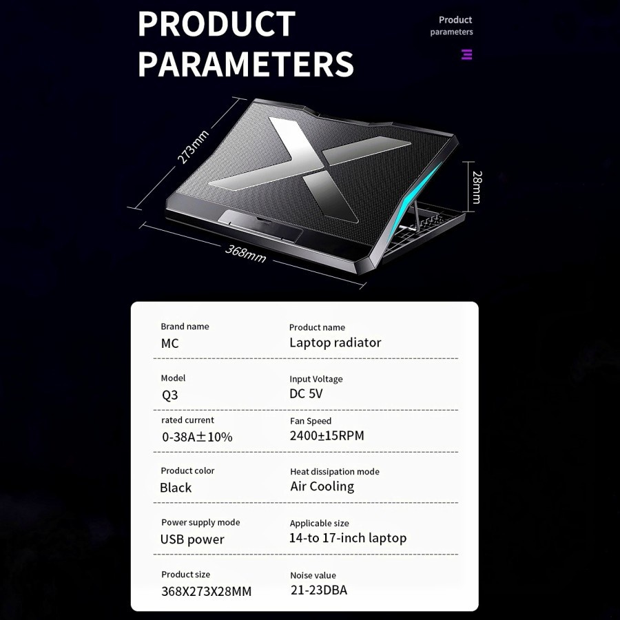 Cooling Pad Laptop Gaming 6 Fan Kipas Pendingin Laptop Kipas Cooler Q3