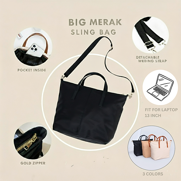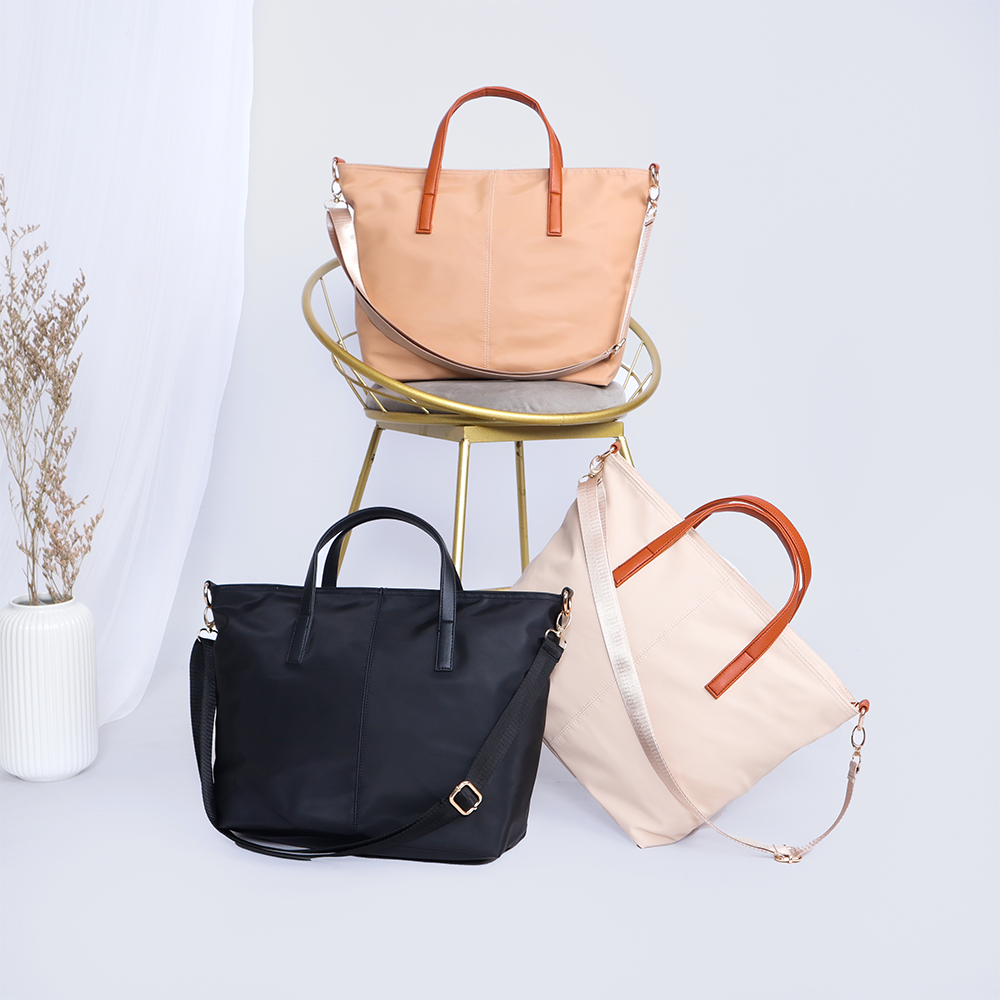 KRUKURI-Tas Wanita Tote Bag Kekinian Nylon & Kanvas Resleting Mini & Big Sling Totebag Handbag-Merak