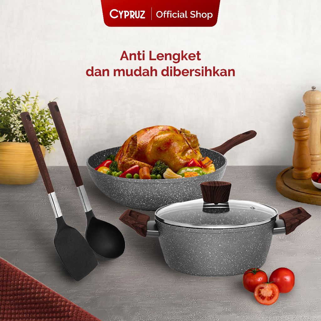 Cypruz Cookware Set Grey Marble Series Panci Set Anti Lengket Premium 5 Pcs GRATIS ONGKIR