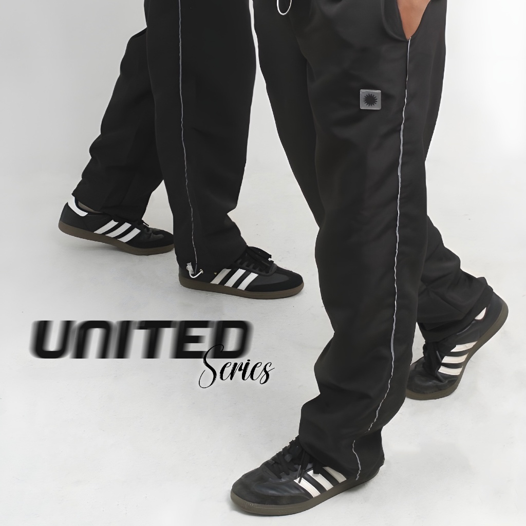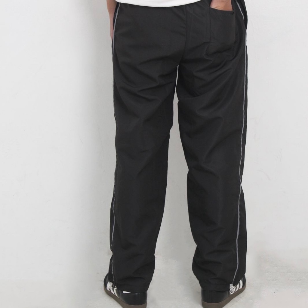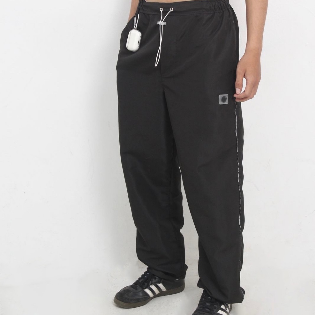 Genuvaly - Trackpants Loose Fit United Series Black Celana Panjang Parasut Taslan Reflektive Rubber Patch