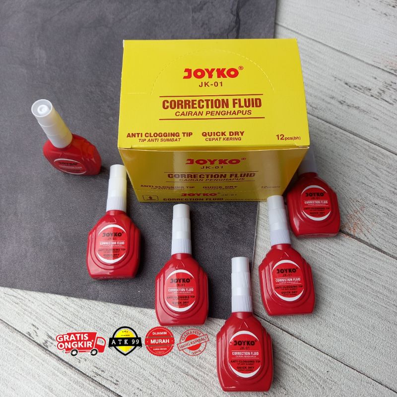 12 Pcs Tipe Ex CAIR Joyko JK-01/Tipe X Cair/Correction Pen/Tipex/Penghapus Pulpen