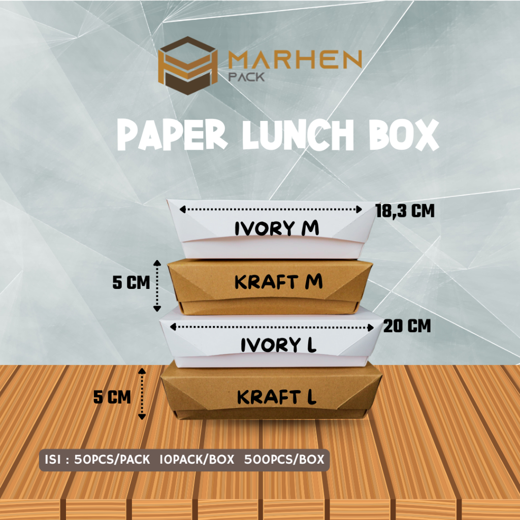 PAPER LUNCH BOX BAHAN KRAFT/ IVORY FULL LAMINASI SIZE S / M / L / PAPER TRAY-Isi 50bh / KOTAK MAKAN