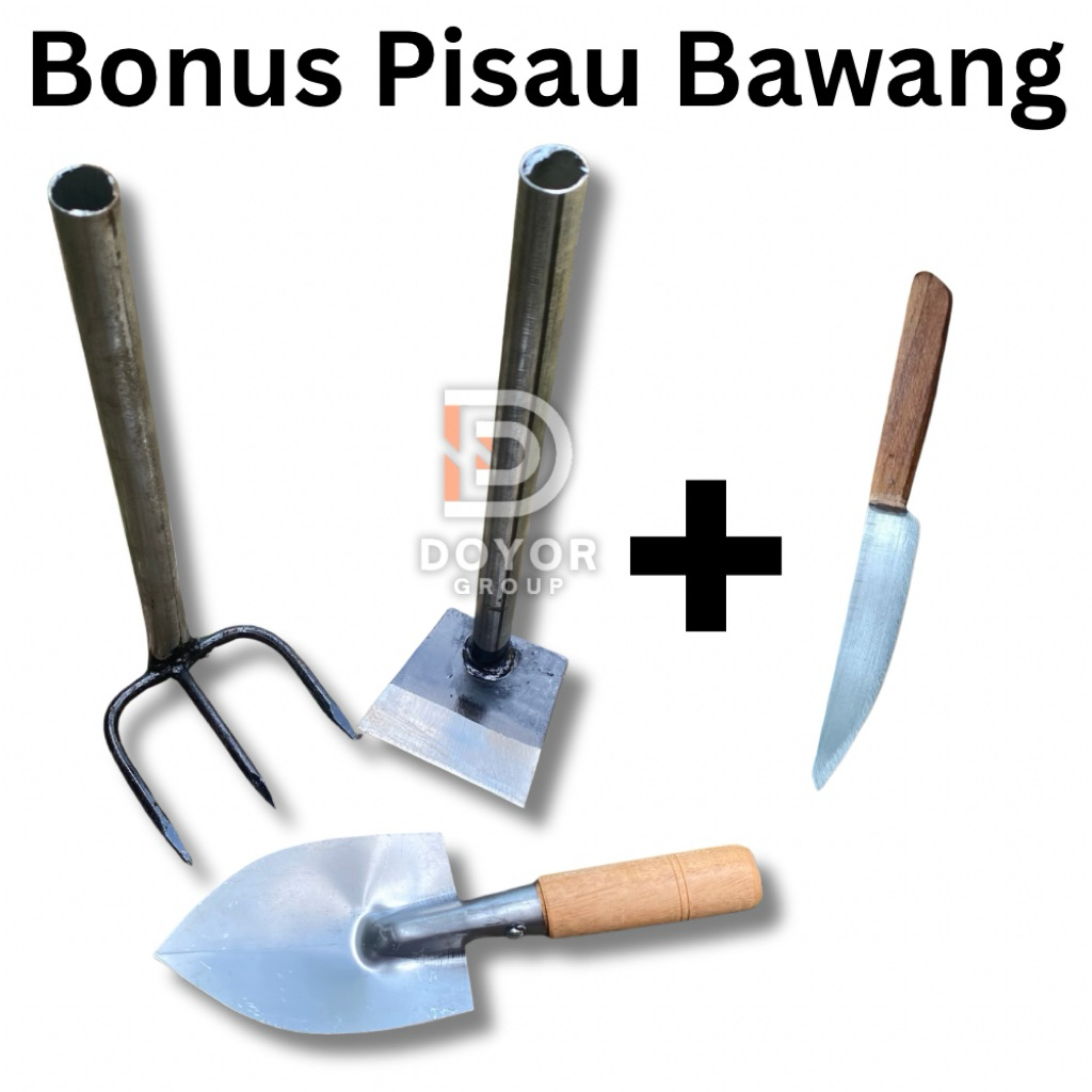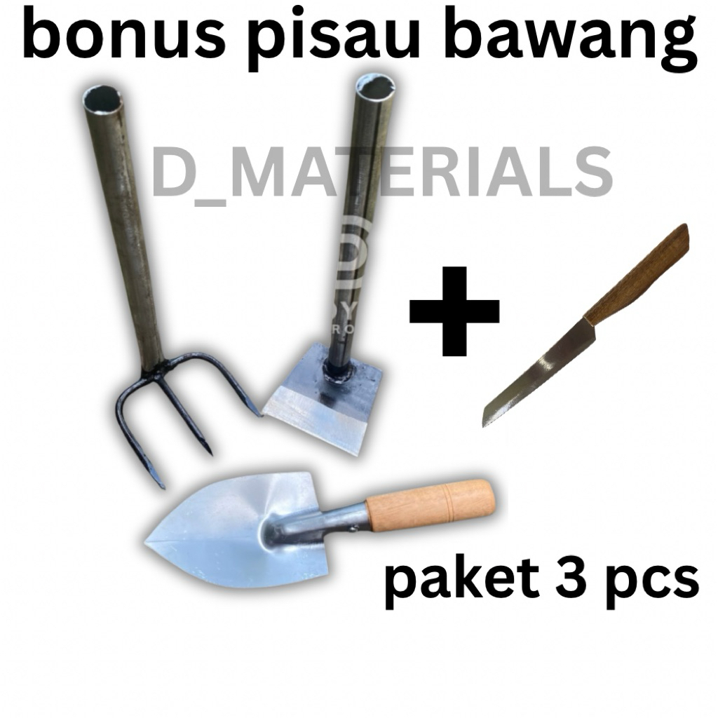 Satu Set Peralatan Berkebun 3 pcs Garuk Cangkul Mini Gagang Pipa Dan Sekop Taman Lancip Siap Pakai