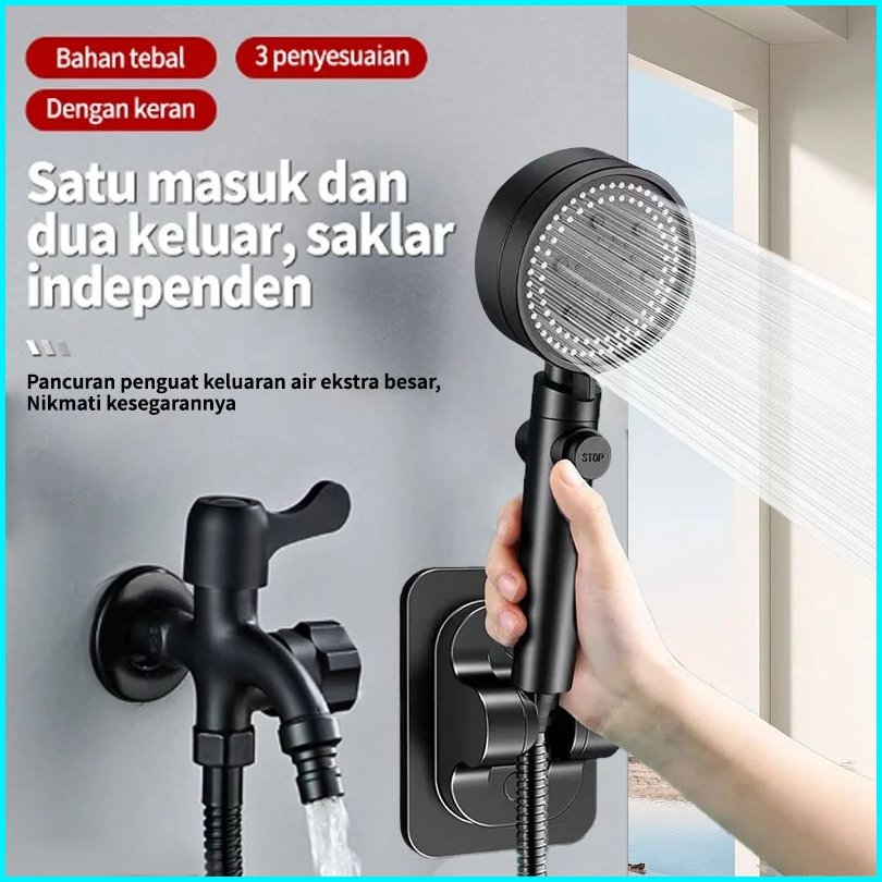 3 In 1 Kepala Shower Set Mandi Hitam Premium Shower Head Set 5 Mode Adjustable Shower Dengan Selang Portable Kamar Mandi