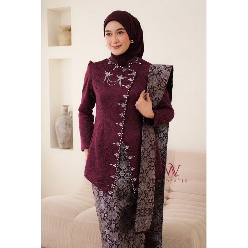 Kebaya Janggan Modern Burgundy Mahogany + Bros Set - Wisuda Lamaran Tunangan 2025