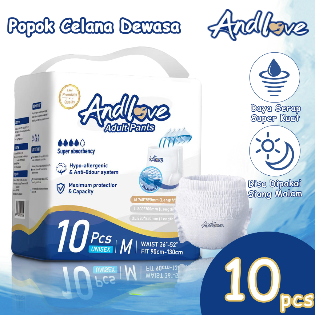 POPOK DEWASA ANDLOVE CELANA ORANG TUA ISI 10 PCS UKYRAN M L XL XXL KUALITAS TINGGI MENYERAP 1200ML PAMPERS MURAH