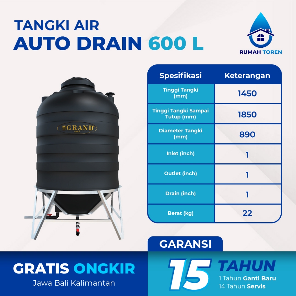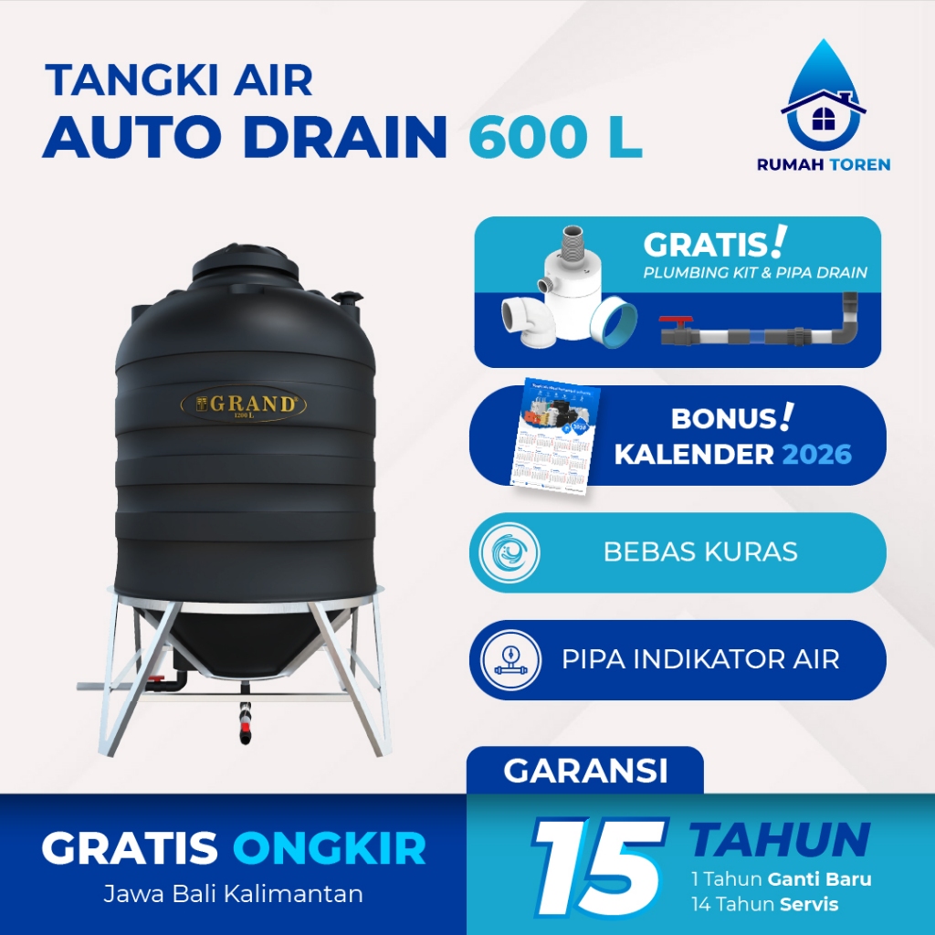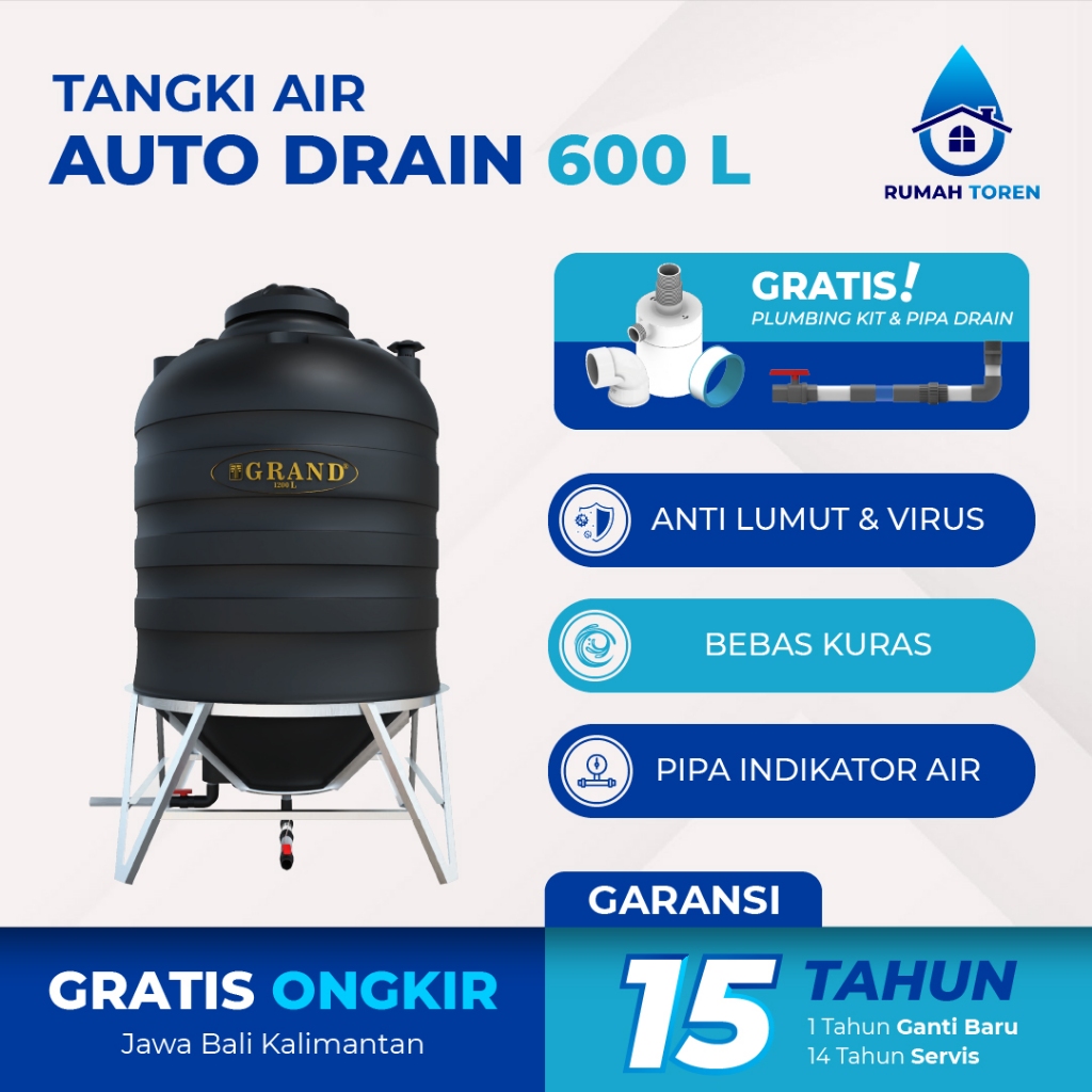 Tangki Tandon Toren Grand Auto Drain 600 L Bebas Kuras Anti Lumut