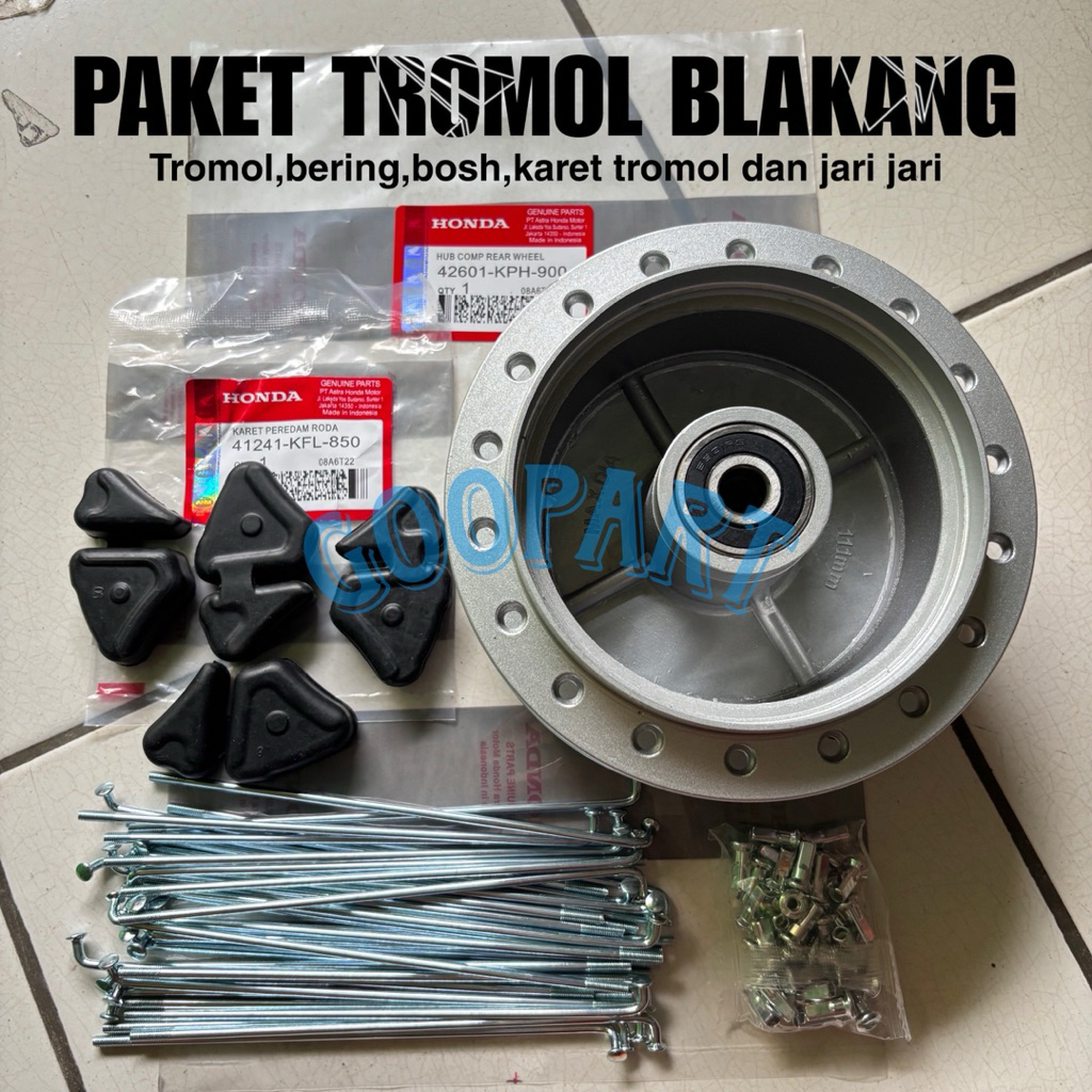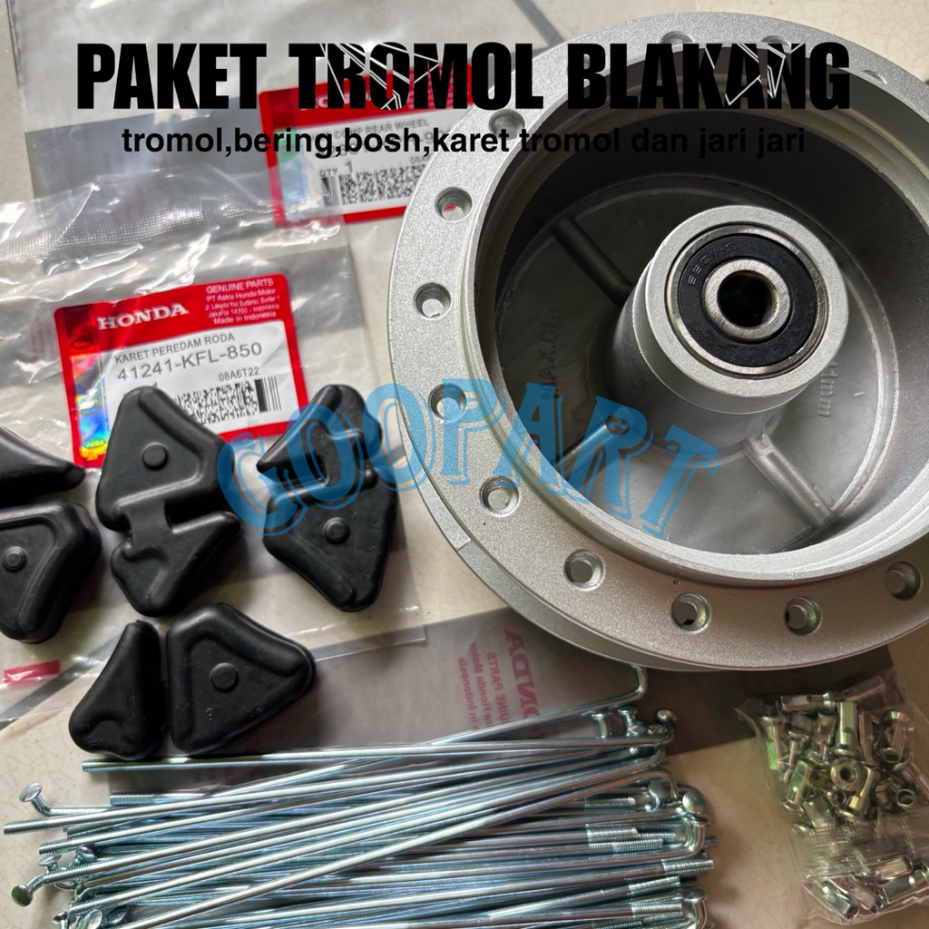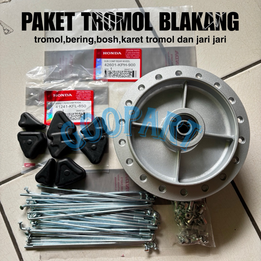 Paket Trombol belakang + karet tromol + jari jari Karisma Supra x 125 Supra fit new Revo -KPHi