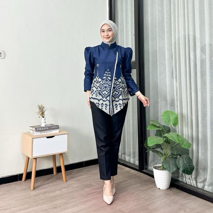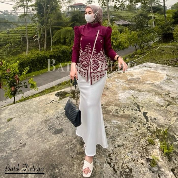 BATIK DELIMA ATASAN KEBAYA BATIK JANGGAN SONGKET BLOUSE WANITA TERBARU SERAGAM KANTOR KATUN HALUS MOTIF PANJANG TUNIK BAWAHAN - BLOUSE SONGKET BURGUNDY, M