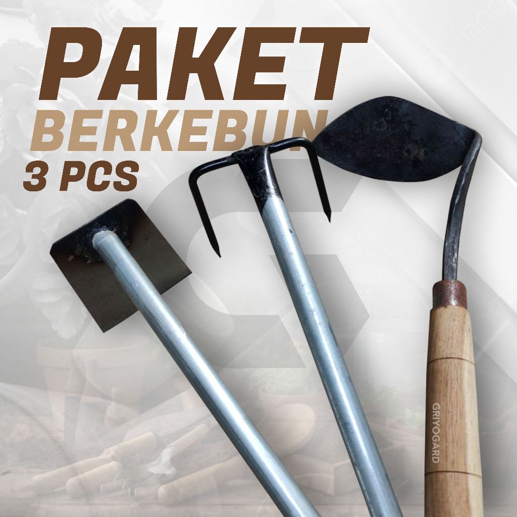 Paket peralatan berkebun 3 pcs cangkul mini garuk mini wangkil miring garukan rumput pencabut rumput