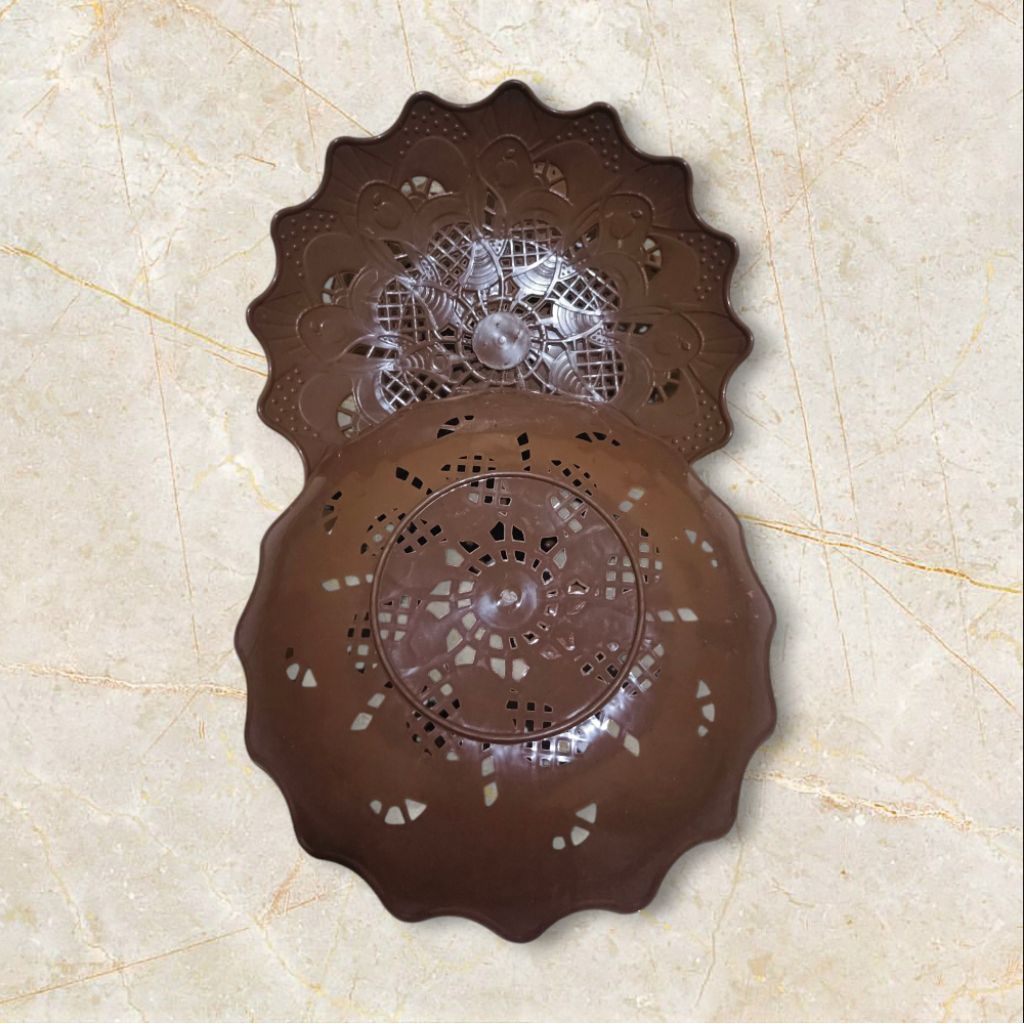 piring plastik motif bunga/piring buah warna coklat (12 pcs) 1 lusin