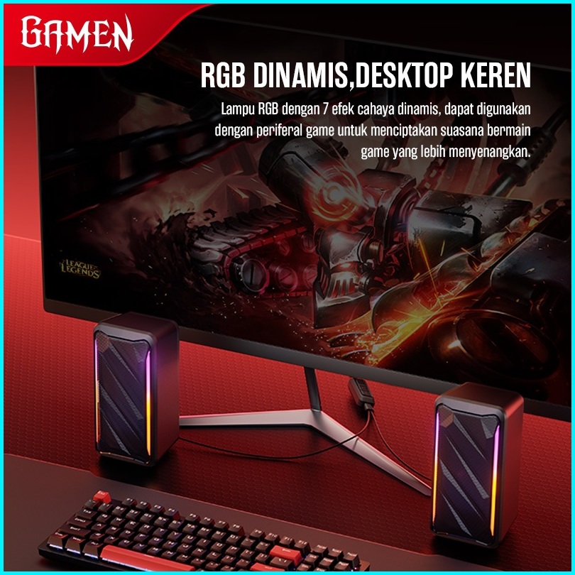 Gamen Speaker Gaming Bluetooth 5.3 Stereo Surround Sound Gs7 For Laptop Pc Hp 7 Rgb Mode Aux 3.5mm Speaker Bluetooth Sup