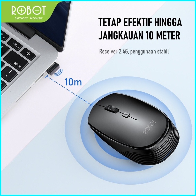 Mouse Wireless Robot M205 2.4g 1600dpi Receiver Usb Untuk Pc Laptop