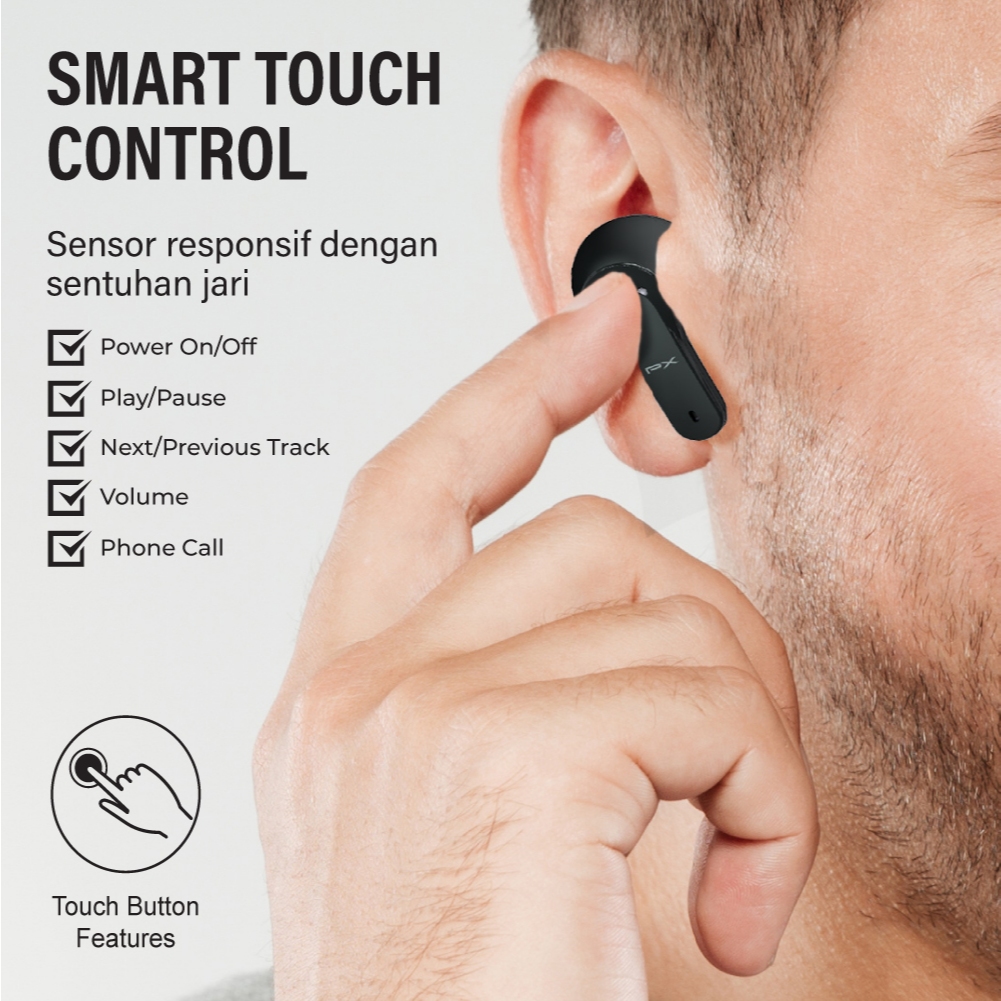 Headset Tws Earphone Bluetooth 6.0 Headphone Earbuds True Wireless Px Q60I - Black