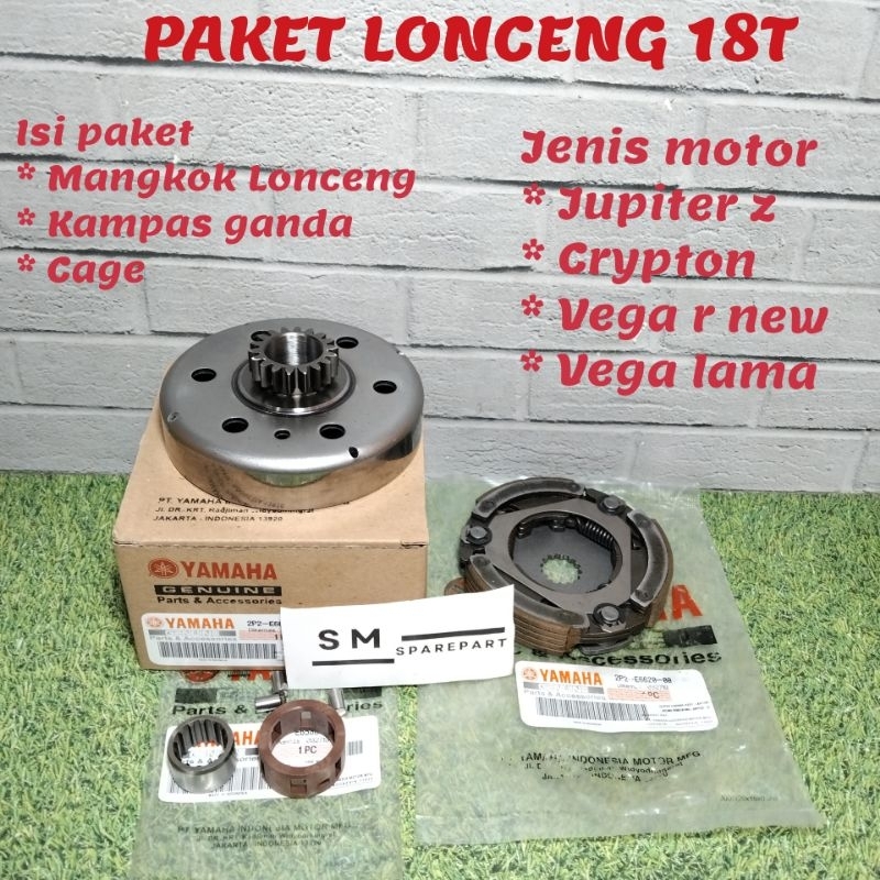 paketan mangkok ganda lonceng 18t + kampas ganda otomatis assy + cage kopling yamaha jupiter z crypton vega r new vega l