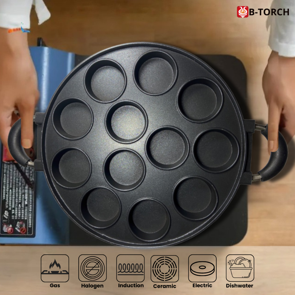 B-TORCH Teflon Aluminium Cetakan Kue Cetakan Telur 12 Lubang Anti Lengket