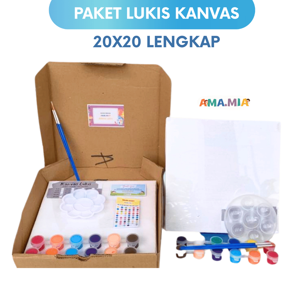 Paket melukis 4 in 1 kanvas 20x20 cm lengkap pallete kuas cat air dilengkapi dengan color mixing chart dan kanvas putih