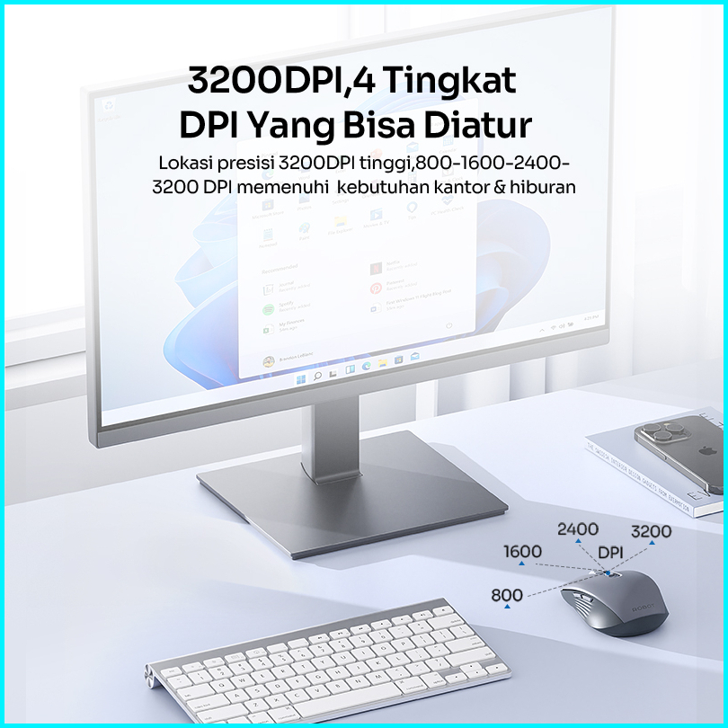 Robot M370 Mouse Wireless 2.4ghz Silent Optical 3200dpi Dengan Receiver Usb Untuk Pc Laptop Original - Garansi Resmi 1 T