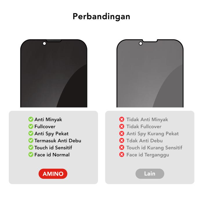 AMINO ANTI SPY TEMPERED GLASS UNTUK IPHONE 13 13 PRO PRIVACY GLASS / ANTISPY ANTIGORES / ANTI GORES / ANTI GORES SCREEN - IP 13 PRO, HITAM_ANTI SPY