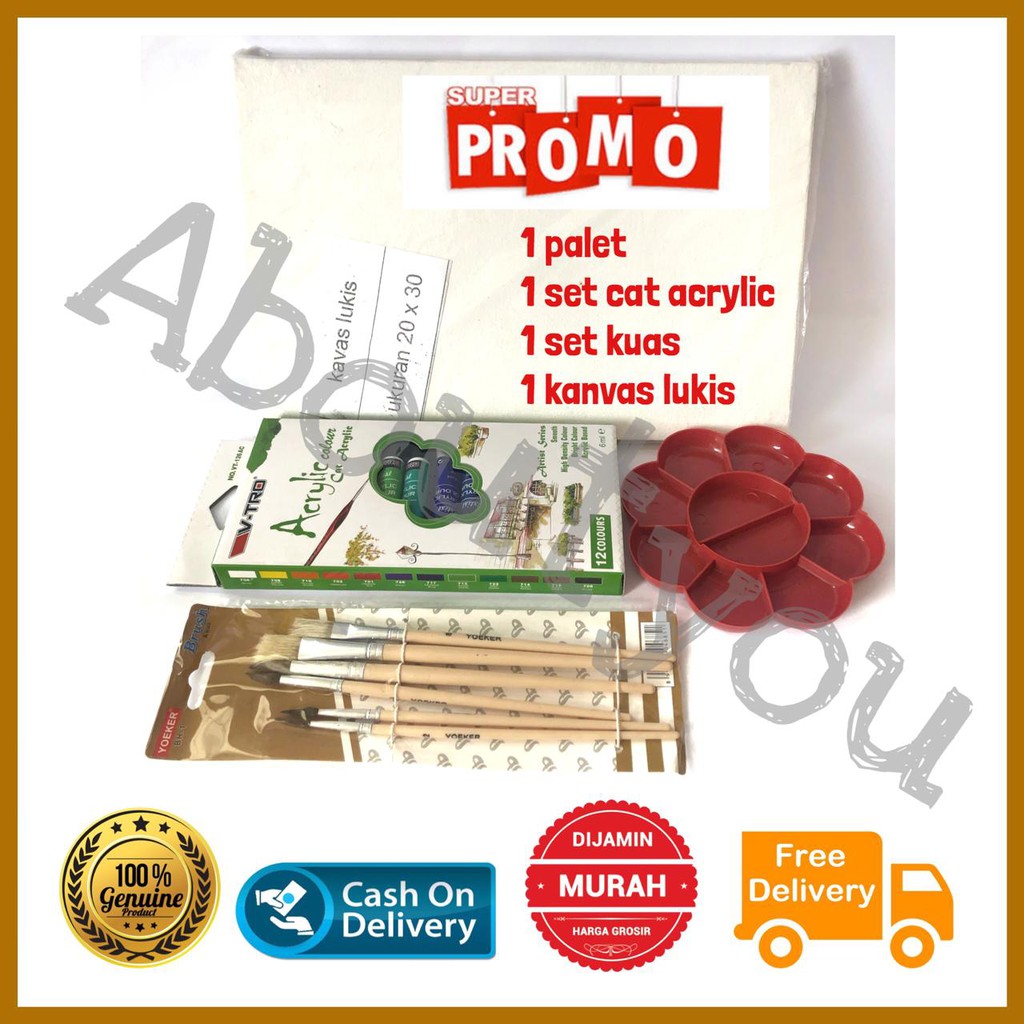 PAKET LUKIS KOMPLIT 4 in 1 KANVAS Besar Cat Akrilik Palet Kuas Set Melukis Lengkap