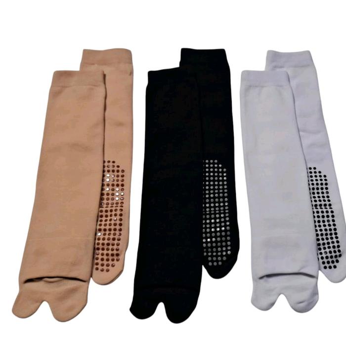 (K RAPI) KAOS KAKI WUDHU JEMPOL ANTI SLIP MUSLIMAH WANITA PANJANG - HITAM, 3 PASANG