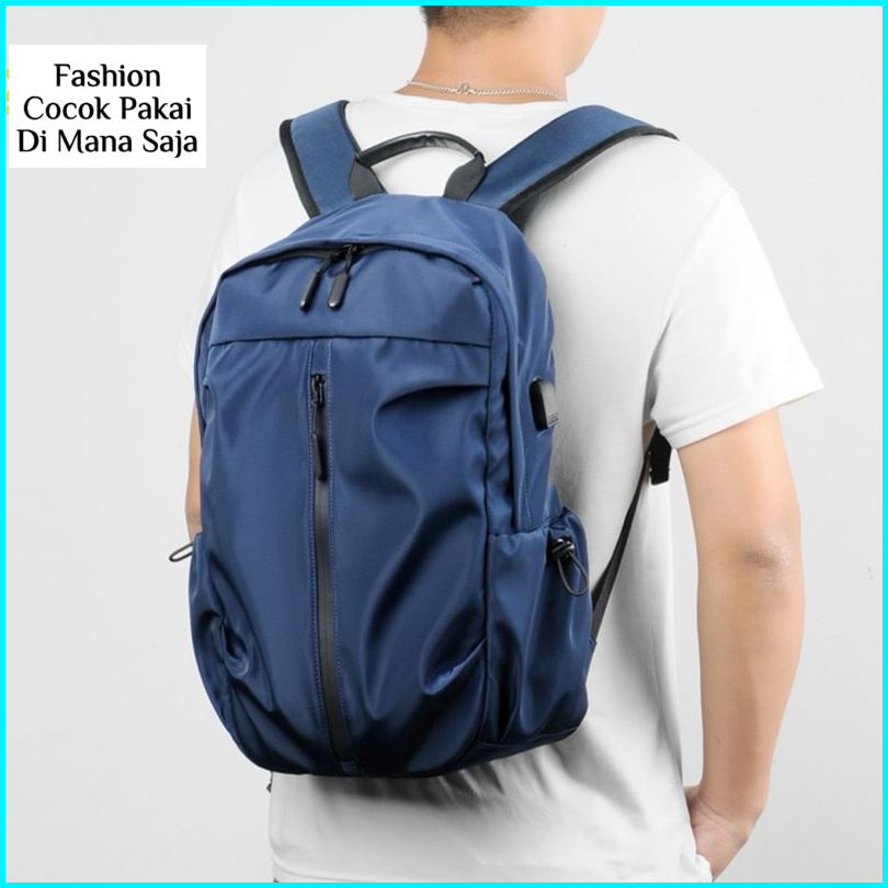 Tas Pria 70002 - Tas Ransel Nilon Polos Tas Pria Kerja Kuliah Sekolah Travel Hiking Backpack Tas Ransel Laptop - E