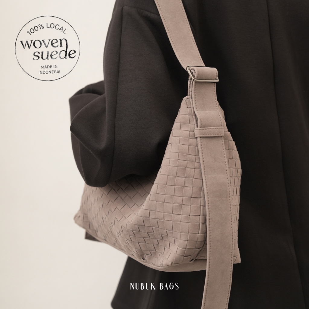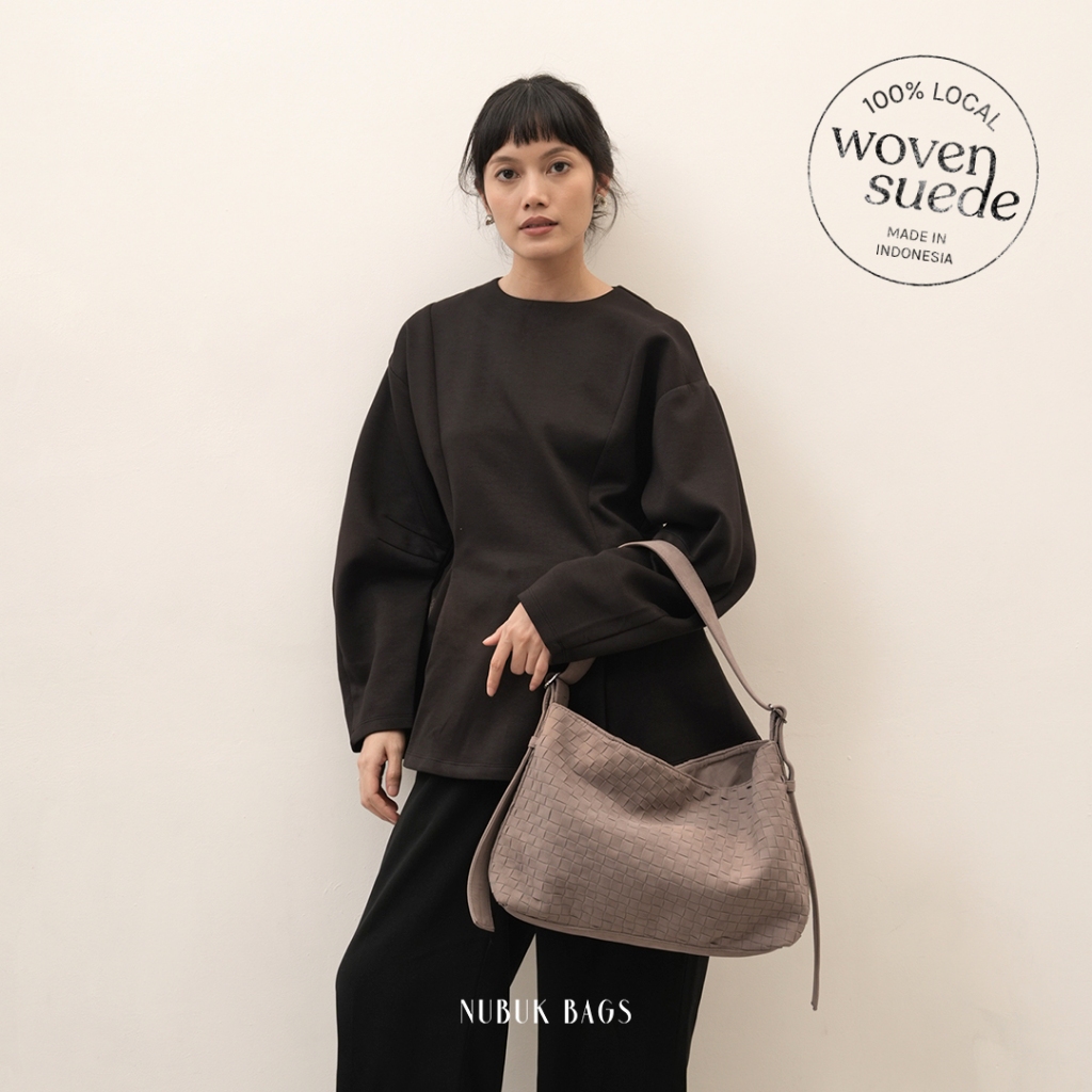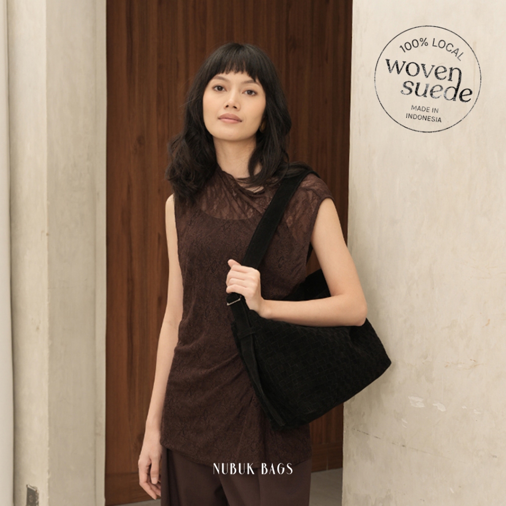 Nubuk Bags - Luma Shoulder Bag Woven Suede - Tas Bahu Totebag Anyam Kerja Wanita Fit Laptop 13 Inch