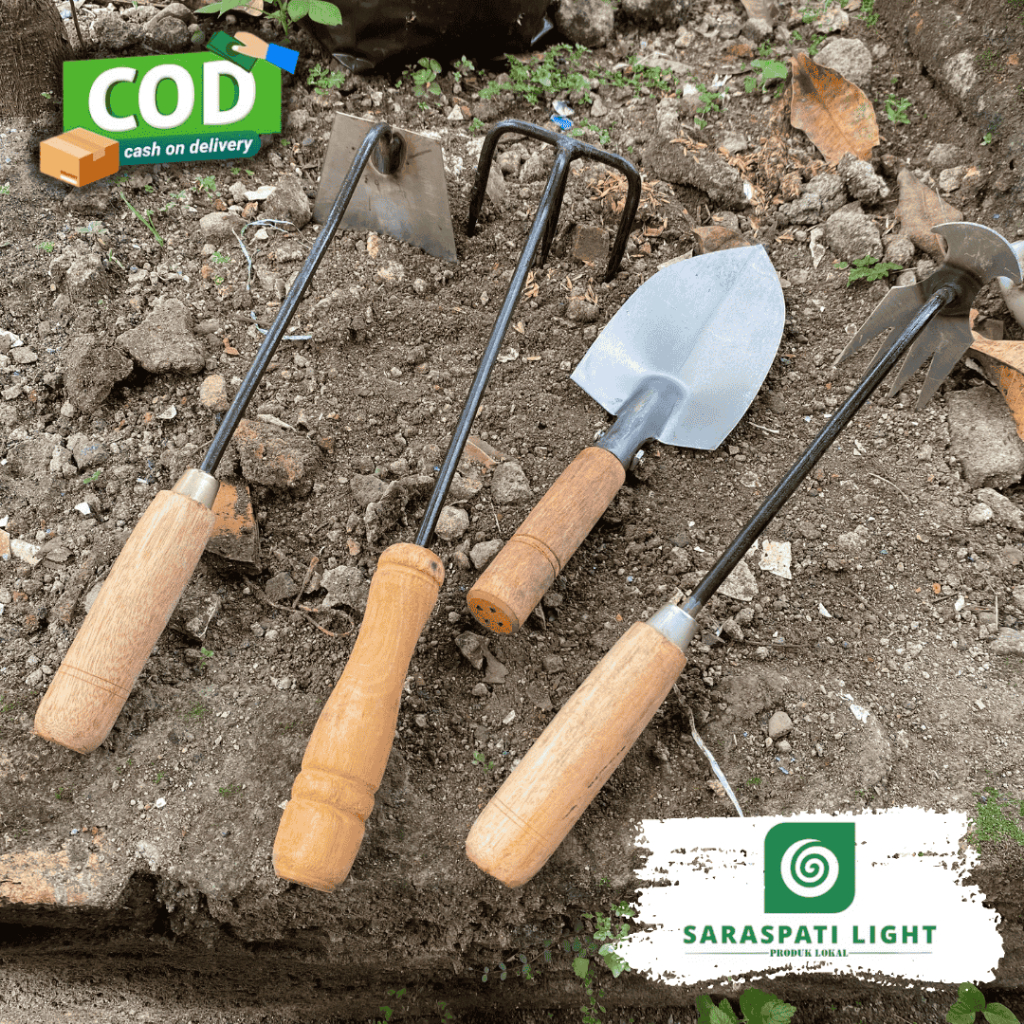 PAKET 4 PCS ALAT BERKEBUN CANGKUL GARUK SEKOP DAN PENCABUT RUMPUT Multifungsi