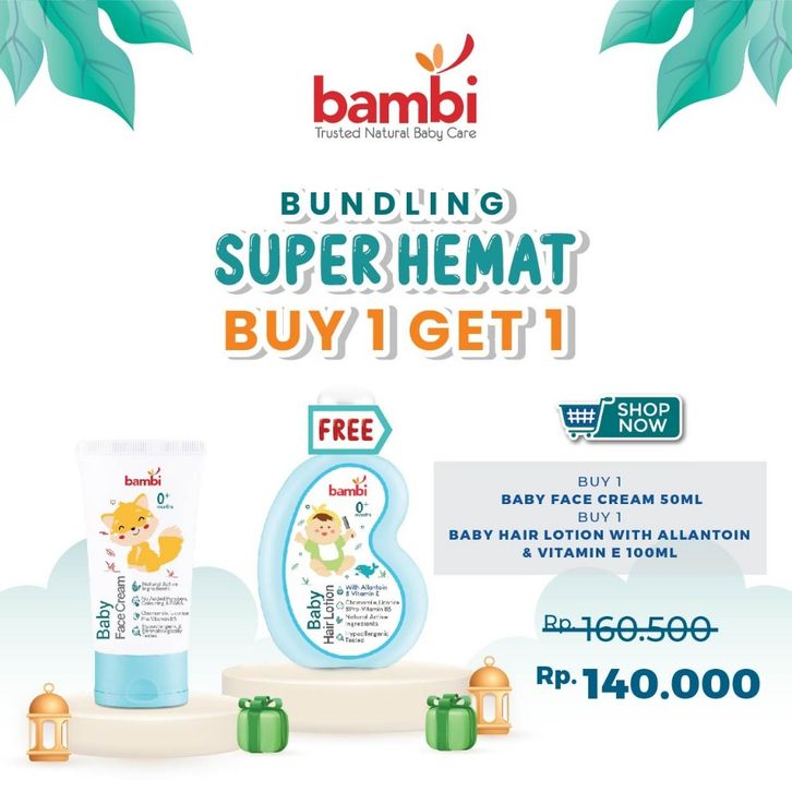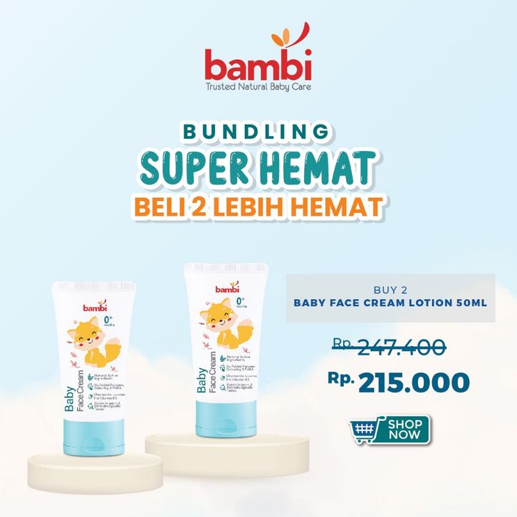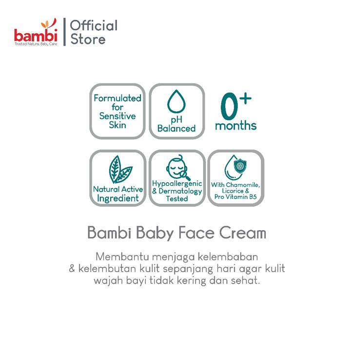 Bambi Baby Face Cream 50ml | Krim Wajah Bayi Kulit Normal - Sensitif | Lotion Pelembab Perawatan Wajah Bayi