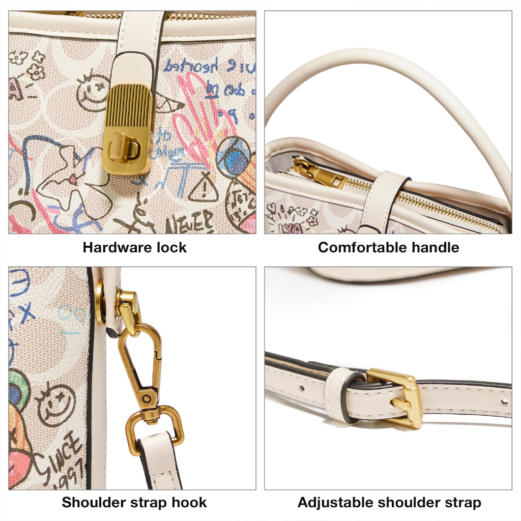 FOXER Tas Bahu Wanita Tas Bucket Grafiti Tas Tangan Fashion Tas Wanita Bermotif Tas kulit