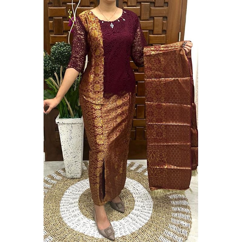 Setelan songket terbaru kombinasi kebaya brokat semiprancis dan terkini lengkap ukuran jumbo