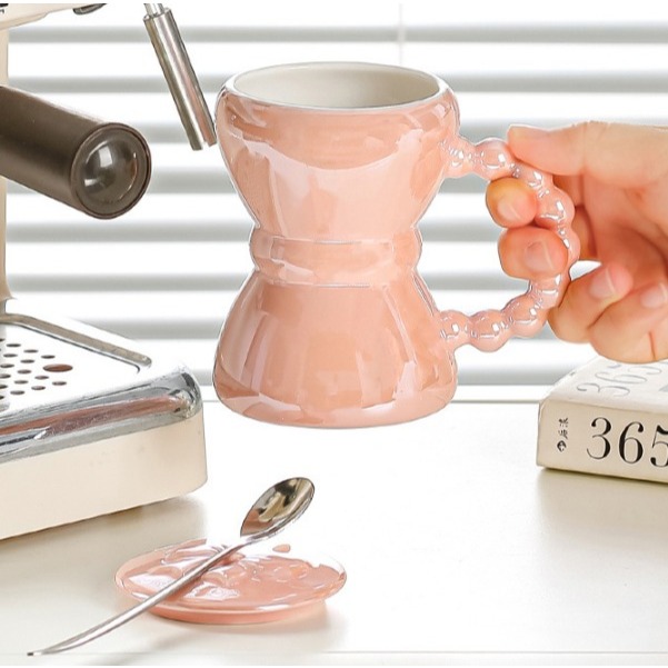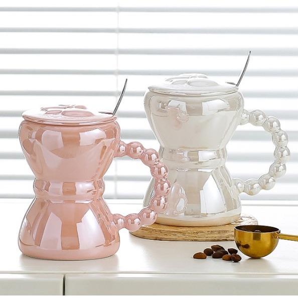 MUG TUTUP PITA GAGANG MUTIARA // BAHAN TEBAL // TAHAN PANAS // INCLUDE BOX // AESTHETIC // COCOK UNTUK HAMPERS // KAPASITAS 300 ML