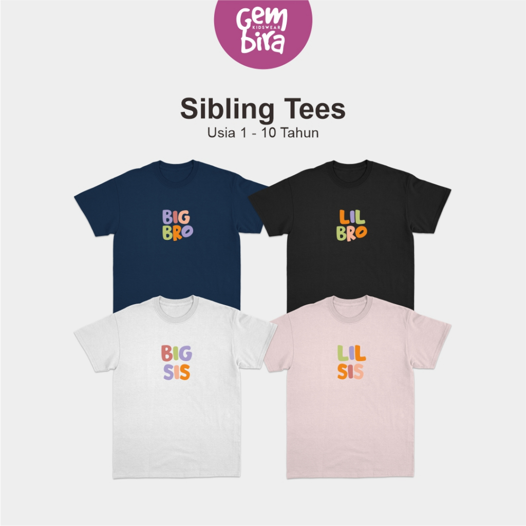 Sibling Baju Kembaran Perempuan Cowok Couple Kakak Adek Anak Kaos Usia 1 2 3 4 5 6 7 8 9 10 Tahun Gembira Kidswear