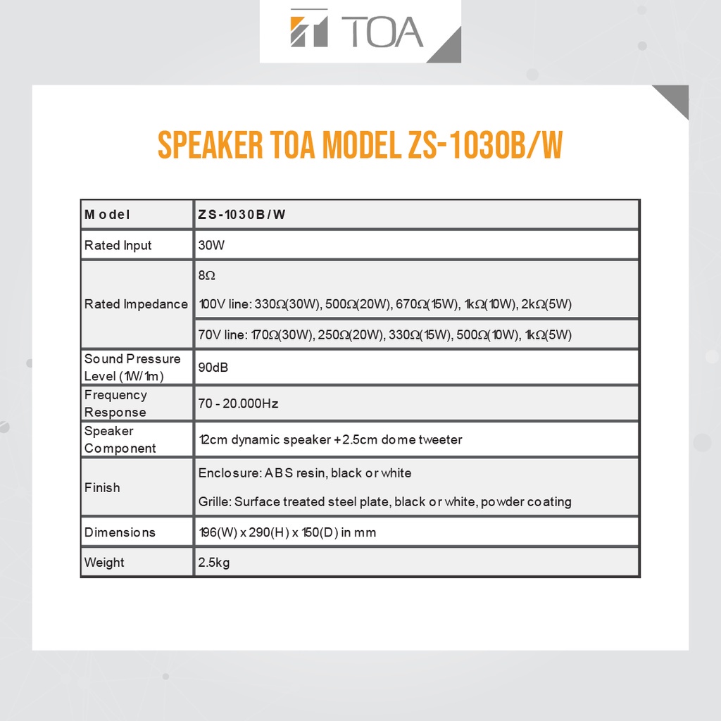 TOA Speaker ZS1030BW Bass-Refleks 2 Arah - Garansi Resmi TOA Masjid / Speaker Toa Terlaris