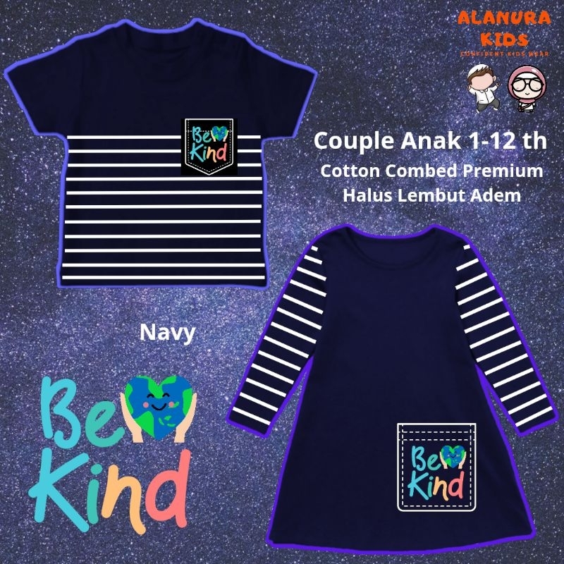 Couple Kaos Tunik Steel Blue Navy Stripe Anak Laki Perempuan Kakak Adik Alanura Kids