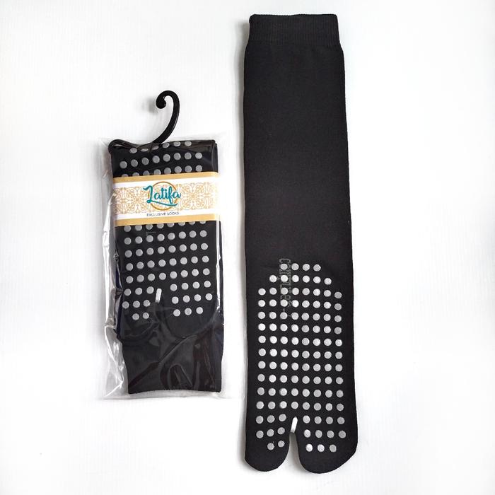 6 PASANG KAOS KAKI JEMPOL MUSLIMAH ANTI SLIP PANJANG SEBETIS SIZE L HITAM MOTIF - 6-PCS-JMPOL-AS-KREM